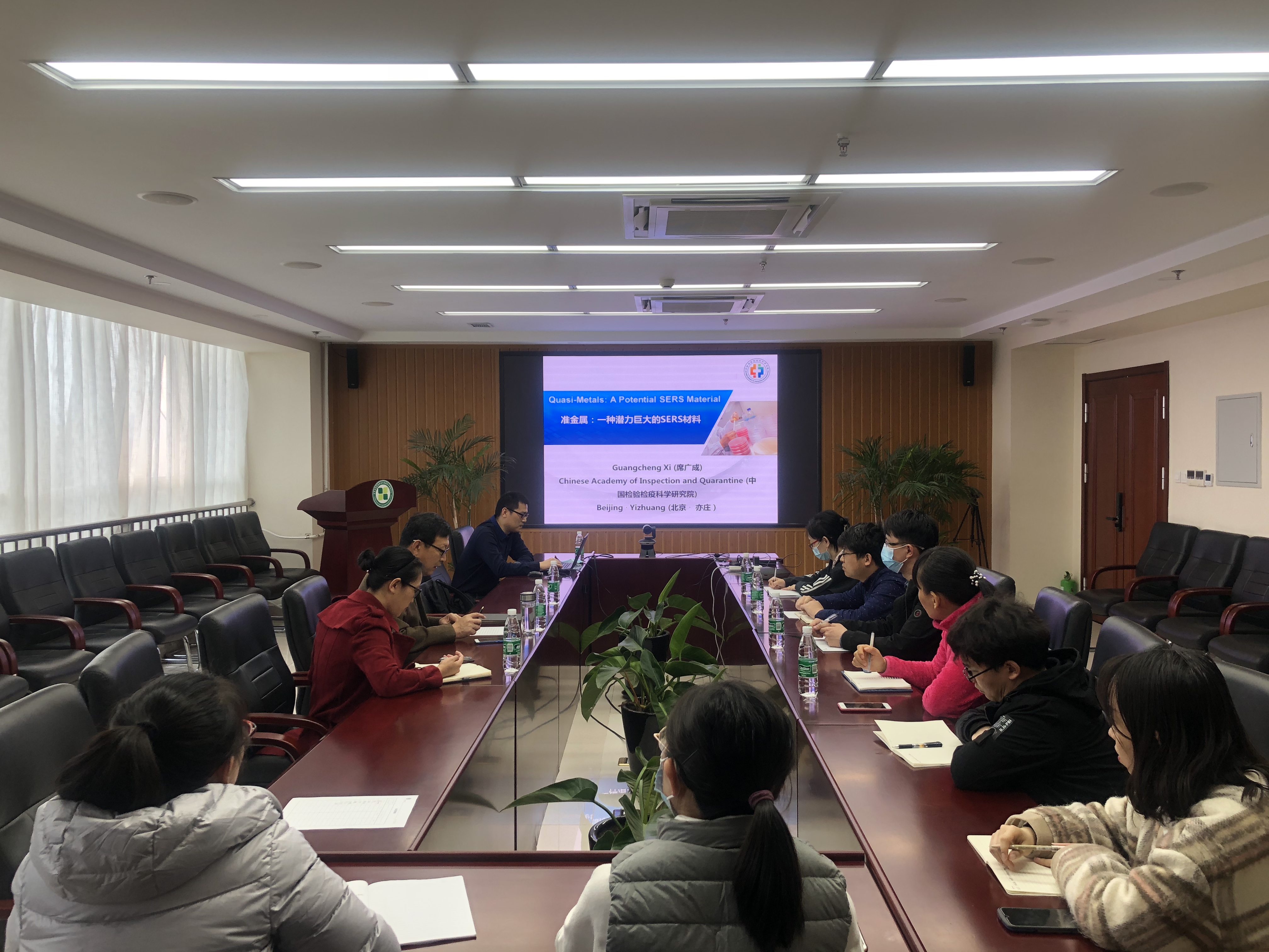 4月2日,应北京农业质量标准与检测技术研究中心的邀请,中国检验检疫科学院纳米产品方向首席专家、工业与消费品安全研究所副所长、纳米材料与产品检测研究中心主任席广成研究员来中心进行交流,并做了题为“准金属:一种潜力巨大的SERS材料”的学术报告。席广成研究员从表面增强拉曼光谱(SERS)技术的发展过程和研究现状、准金属纳米材料的制备及SERS性能、介晶纳米材料用于SERS检测等方面介绍了其领导的研究团队近几年取得的一系列科研进展,并对未来SERS技术在基底工程化和定量化等关键问题上的突破进行了展望。报告会由中心学术委员会主任潘立刚研究员主持。会后,席广成研究员与中心相关科研人员就SERS技术在农产品污染物检测和品质分析上的应用、大面积均匀SERS基底材料的制备工艺以及纳米材料的生物安全性等问题进行了深入探讨和交流。