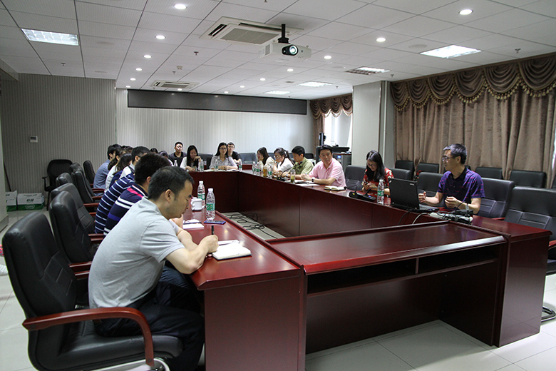 王坤教授一直致力于设计和制备功能纳米材料,并探索其在农产(食)品品质检测中的应用基础研究,已建立了一系列简便、快速、准确和高效检测农产(食)品中农药残留、微囊藻毒素、抗生素、真菌毒素、重金属离子、营养成分和食品转基因成分的光电化学分析检测方法。本次报告围绕“农药残留检测研究”、“真菌毒素检测研究”、“微囊藻毒素检测研究”、“重金属离子检测研究”和“转基因作物检测方法及装置研究”五个方面内容进行了交流。报告后王坤教授与科研人员进行了热烈的讨论,并在中心领导的陪同下参观了质标中心大型仪器实验室。