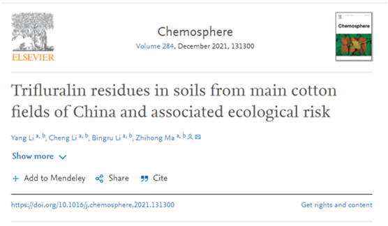 近日,质标中心检测技术研究室团队在环境领域知名学术期刊Chemosphere(IF=7.068)发表了题为Trifluralin residues in soils from main cotton fields of China and associated ecological risk的研究论文,研究揭示了除草剂氟乐灵在我国主要产棉区土壤中空间分布特征和生态风险,为我国氟乐灵安全应用和风险评价提供数据支持。