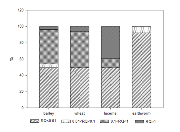 本研究通过对我国三大产棉区(新疆产棉区、黄河流域产棉区和长江流域产棉区)共计139份土壤中氟乐灵残留进行系统调查,掌握了氟乐灵在我国棉田土壤中的污染水平和空间分布特征。通过风险商(RQ)的方法,对棉田土壤中氟乐灵生态风险进行评估,揭示了棉田土壤中氟乐灵残留的潜在危害。该研究结果为氟乐灵的环境风险防控提供了重要数据支撑。