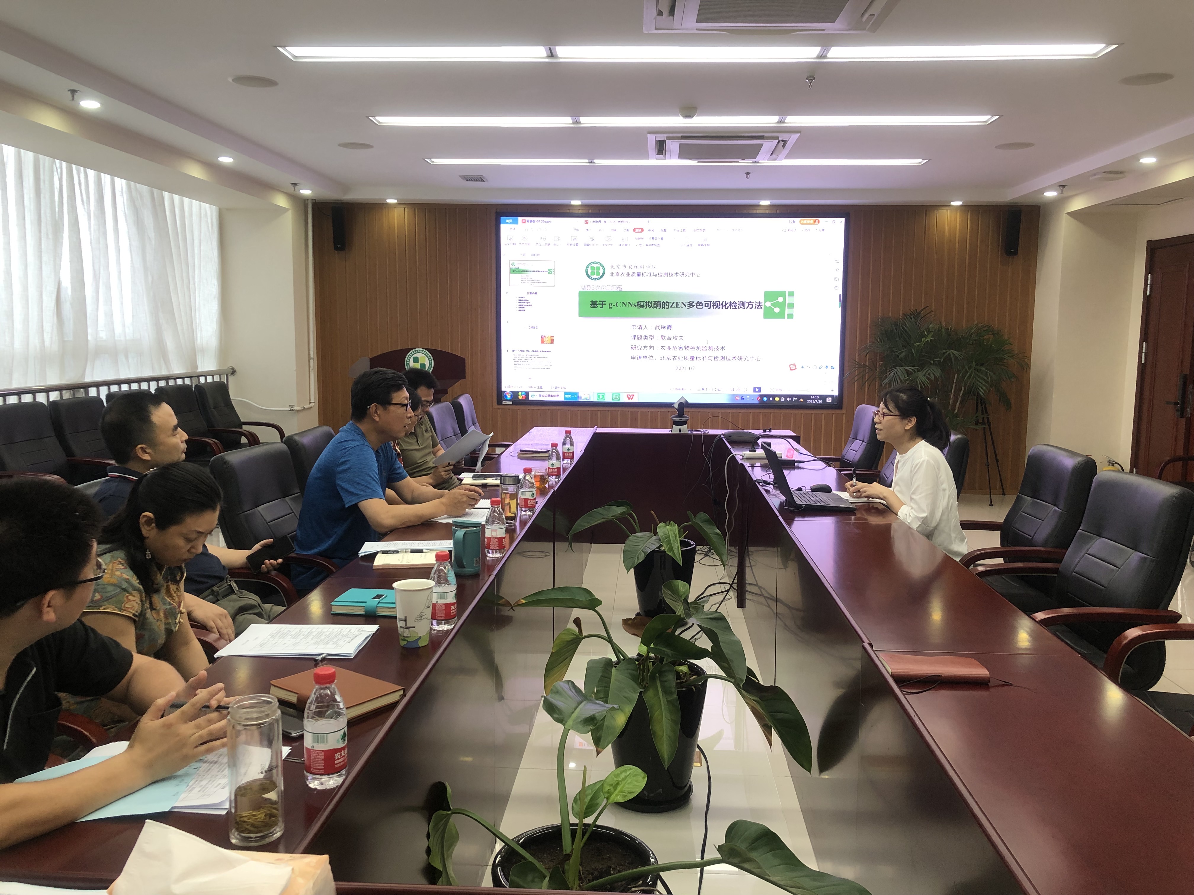 来自中国地质大学、农业农村部环境保护科研监测所等科研院所的8名科研人员申请了此次开放课题,课题申报涉及农业危害物检测监测技术、环境及投入品评价、农产品溯源与品质评价等领域,鼓励中心与其他科研机构联合研发,特别是京津冀区域科研院校开展合作研究。申请人从研究目标与意义、研究内容、技术路线、经费预算等方面进行了汇报,中心学术委员会委员们针对课题提出了意见和建议。