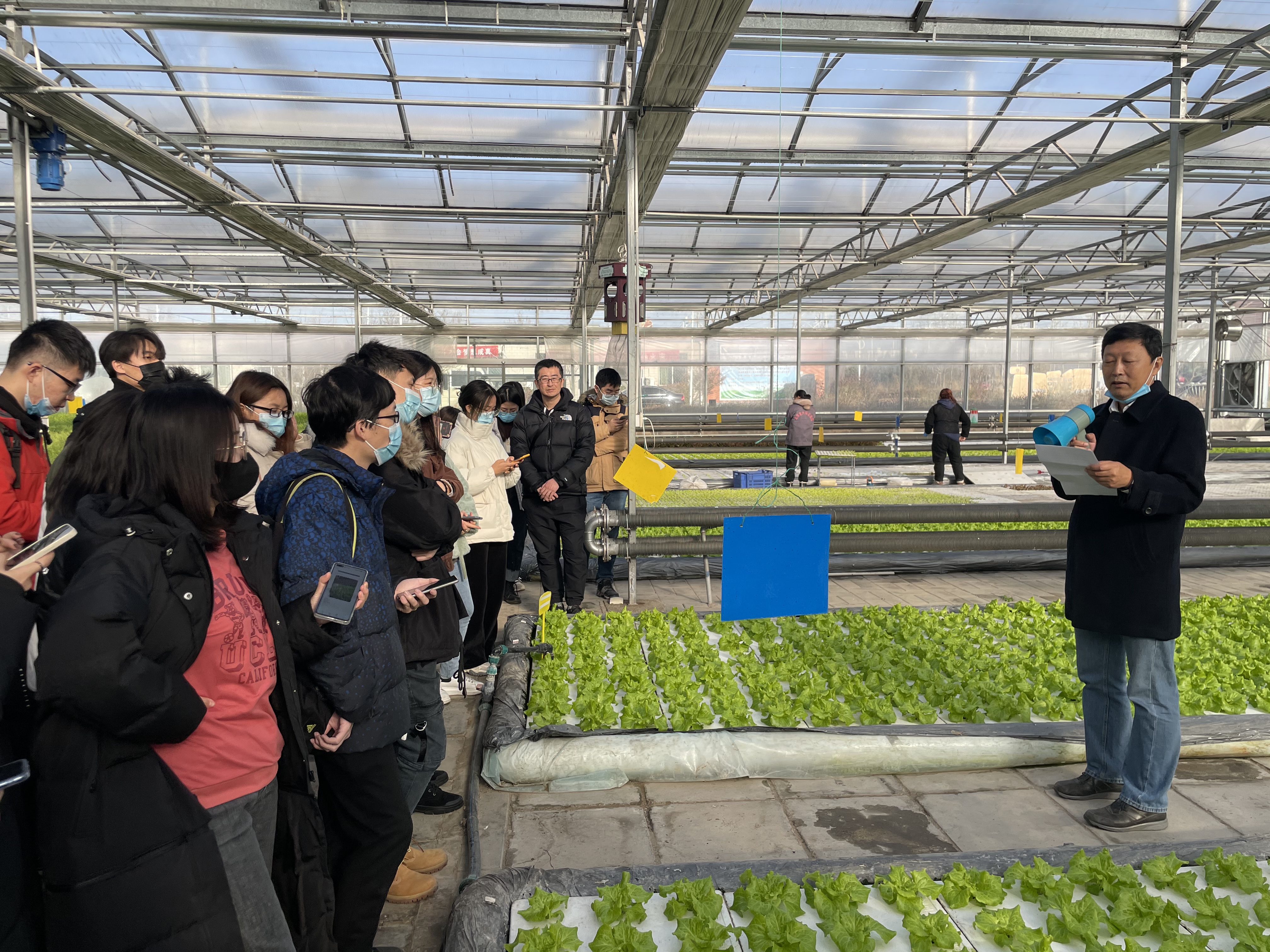 2021年12月20日、23日,质标所联合北京农学院开展农业技术田间实践教学活动,潘立刚研究员作为该校客座教授,为学生们做了“农产品质量安全”的专题课程,并在北京金六环农业园和北京天安农业发展有限公司开展了基地实践教学活动。2021级植物保护专业和资源环境专业的46名研究生和5名辅导老师参加了本次实践教学活动。