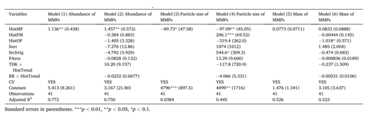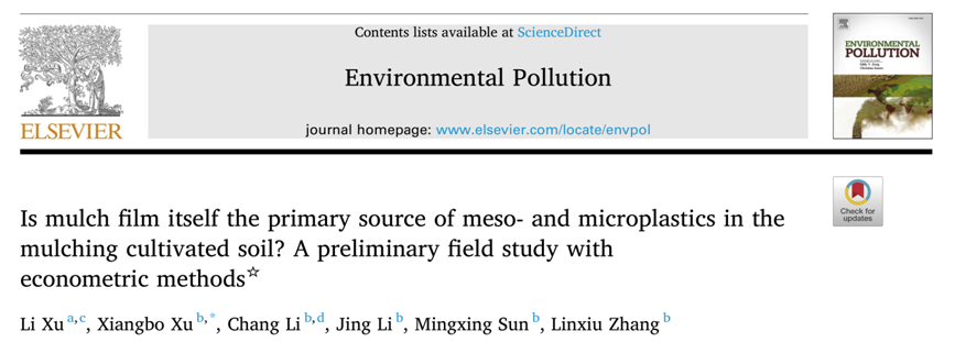 近期,质标所农田环境室微塑料研究团队在国际环境领域TOP期刊《Environmental Pollution》(IF: 8.071)上发表了学术论文《Is mulch film itself the primary source of meso- and microplastics in themulching cultivated soil? A preliminary field study witheconometric methods》。本研究以长期覆膜土壤为研究对象,明确了土壤中微塑料的丰度、重量、形状、粒径、颜色以及类型,并结合计量经济学的方法,进一步探讨了土壤微塑料污染的成因和来源,为长期覆膜土壤中微塑料的污染管理提供了重要依据。