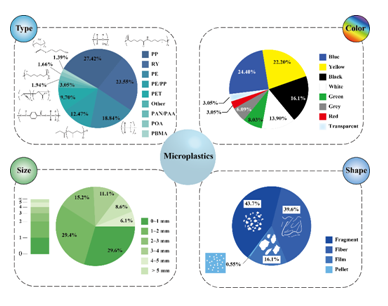 图2 土壤中微塑料类型、颜色、粒径及形状特征