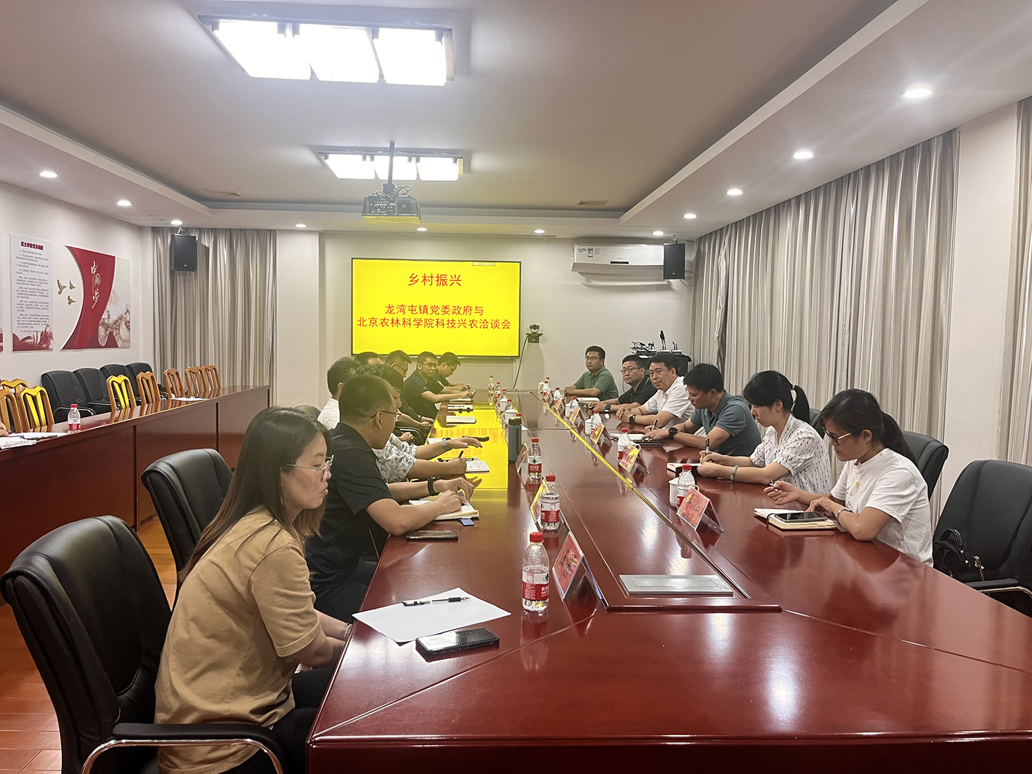 龙湾屯镇党委副书记、镇长梁宝欣向参会人员详细介绍了“龙湾质造”三级体系建设的相关情况,并具体阐述了在科技兴农、品牌强农、服务助农和产业富农方面的战略规划和实施路径。同时,龙湾屯镇领导班子其他成员结合自己的工作分管领域,介绍了龙湾屯镇在全面推进乡村振兴工作方面所取得的进展情况。镇党委书记李杜对我院长期以来对该地区发展的支持表示感谢,并希望进一步建立长期稳定的合作机制。在农林产品质量标准的把控、优质品种的选定、科技人才支持等方面展开深入的合作交流。积极探索科技创新,有效促进科研成果的转化,全面加速农业现代化进程,共同推动乡村振兴。