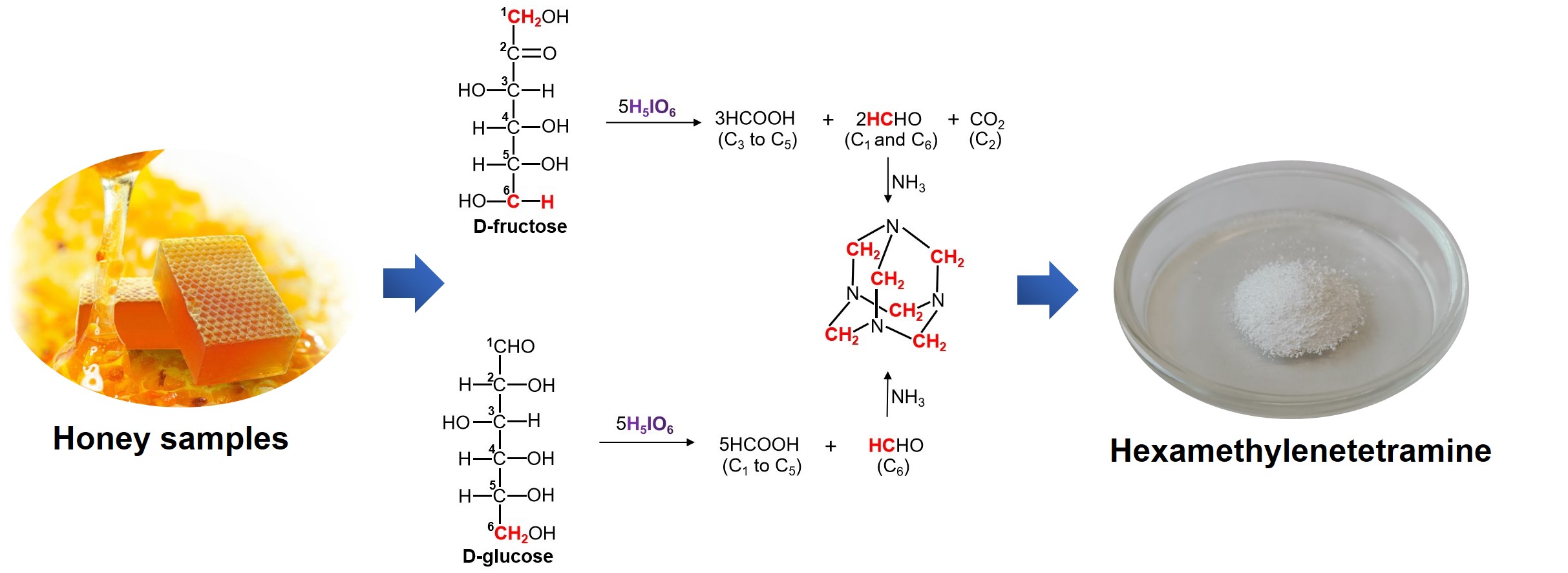 图1 蜂蜜中单糖(葡萄糖/果糖)衍生化反应途径示意图