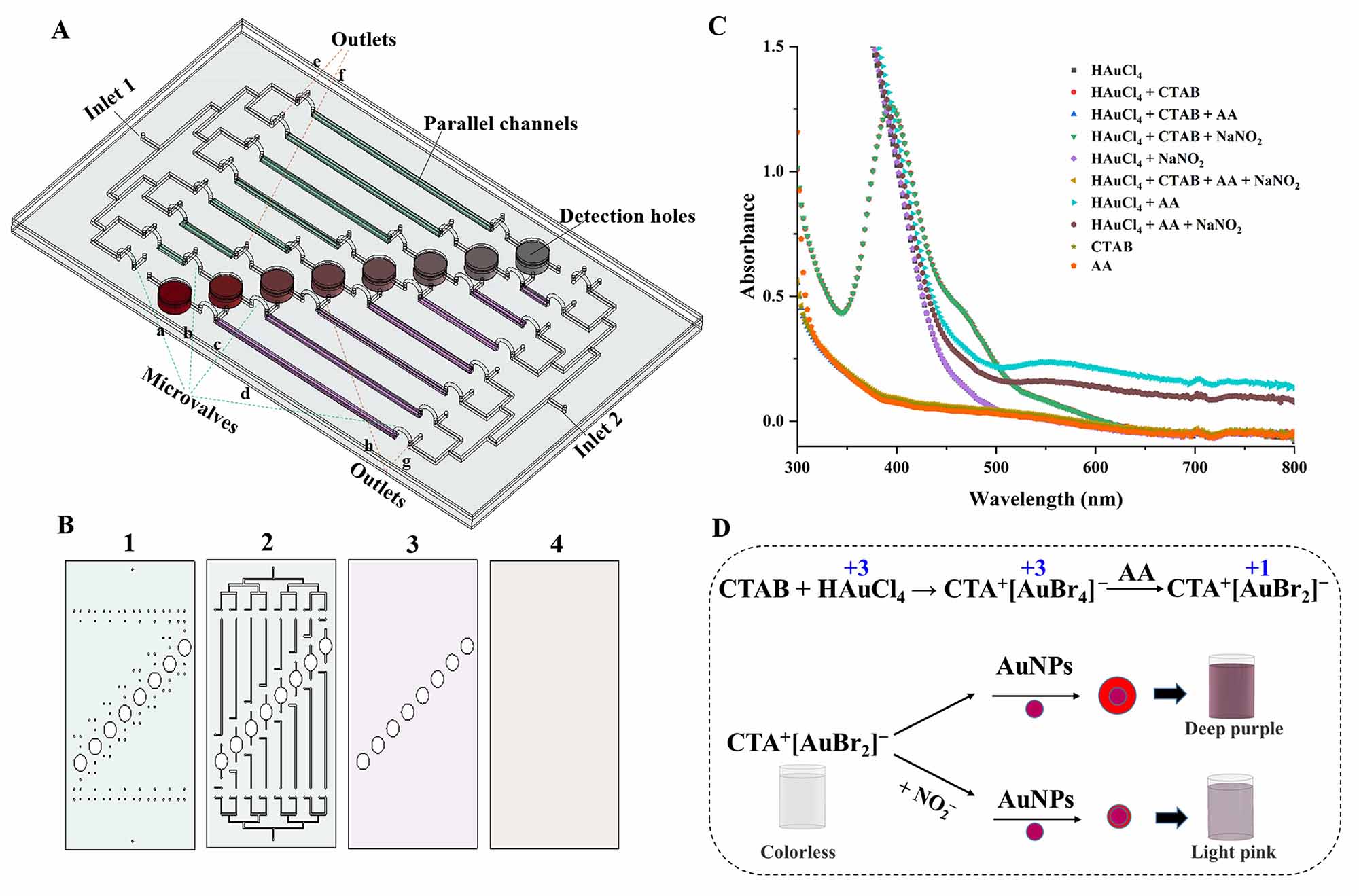 微流控浓度梯度芯片的设计及亚硝酸盐抑制AuNPs信号放大的机理