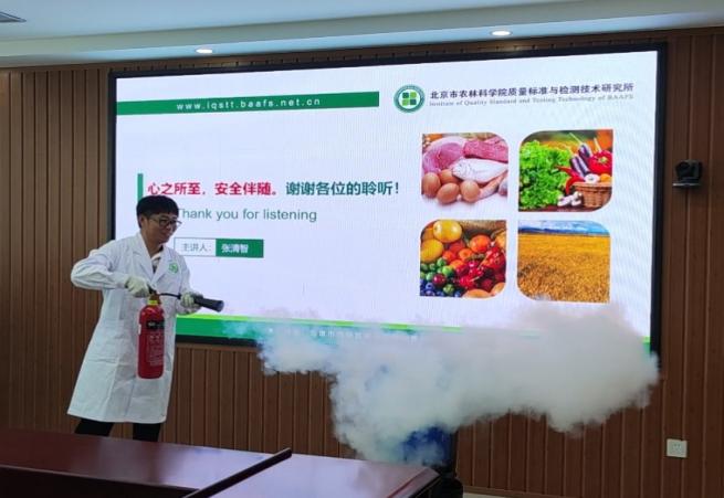开展了安全知识培训,安保干部张清智做了题为“实验室安全应知应会和消防安全”讲座,重点介绍了实验室安全常识、工作人员操作常识、发生事故时应对策略及应急处理方法等。讲座内容紧扣我所工作实际,通俗易懂,实用性和可操作性强。开展了灭火演练,现场模拟酒精灯起火,科研人员手持二氧化碳灭火器实操灭火,与会人员积极参加,现场气氛热烈。