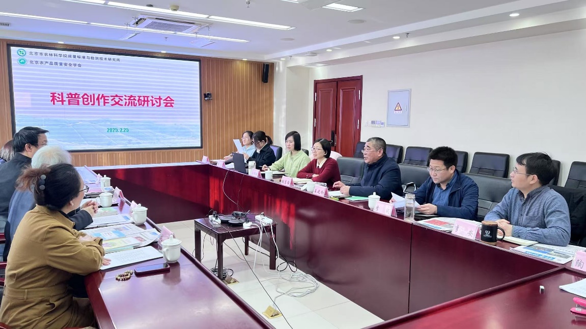 为推进农产品质量安全与营养健康科普工作高质量发展,2025年2月25日,我所召开了科普创作交流研讨会,共商农产品质量安全与营养科普创作与传播新路径。《科普时报》社长尹传红、总编辑刘莉、编辑胡利娟、中国科普作家协会会员许焕岗研究员、北京农产品质量安全学会理事长王之岭研究员和质标所领导、科普虚拟创新团队成员共计13人参加了研讨。
