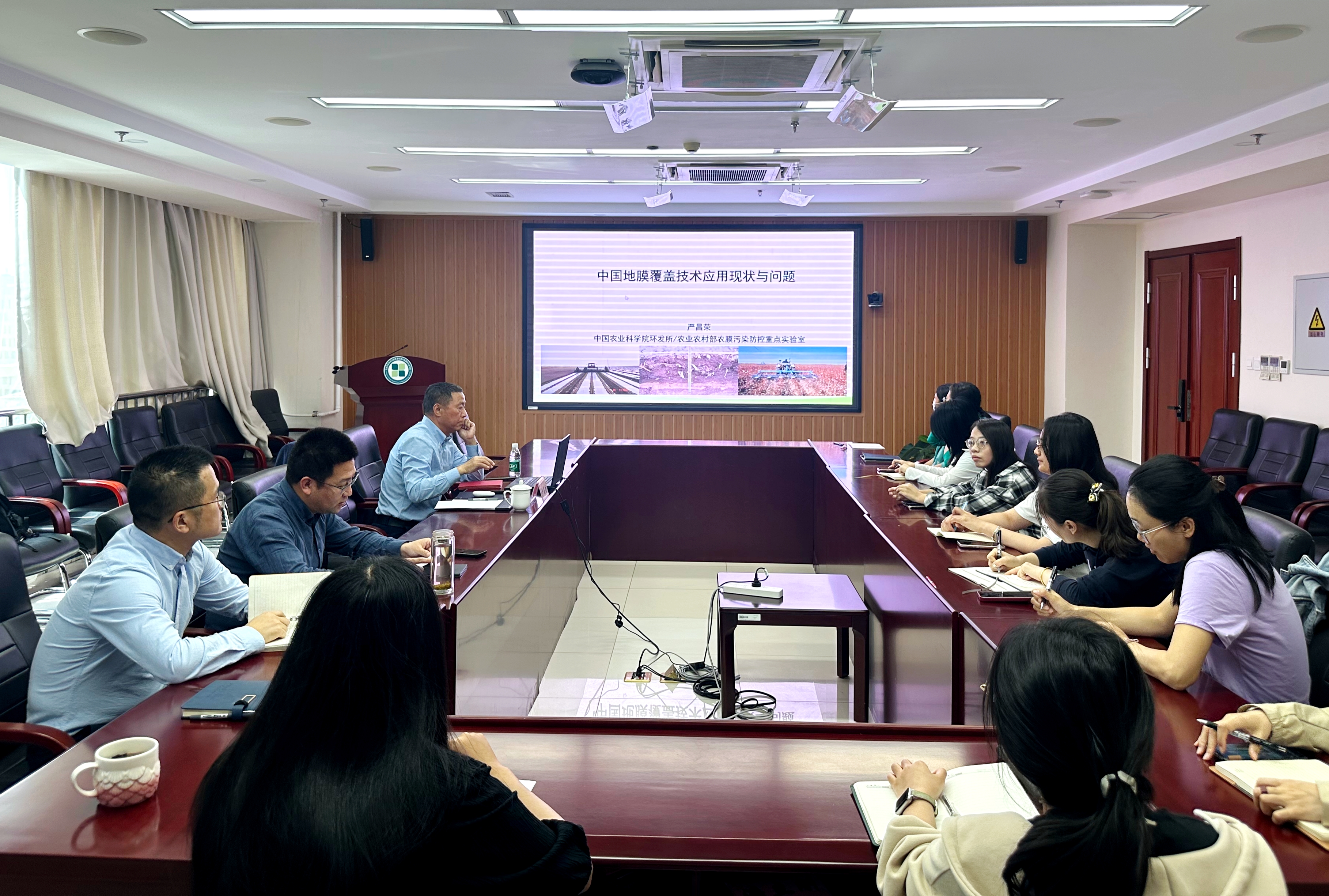 报告中,严昌荣研究员系统梳理了中国地膜的使用历史和现状,深入阐释了地膜在农工业生产中的关键作用和突出贡献。剖析了地膜残留特点及主要危害,尤其对地膜使用造成的微塑料及塑化剂等新污染物污染的前沿问题进行了介绍,并从AI在地膜应用和地膜适应性评价两个方面提出了未来研究的热点。报告尾声,与会科研人员与严昌荣研究员围绕微塑料检测方法、污染溯源等议题展开深入研讨。通过此次交流,有效拓展了我所科研人员在地膜源新污染物环境归趋与防治方面的学术视野。
