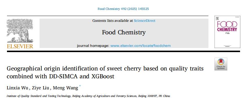 近日,质标所品质评价与控制研究团队在地理标志甜樱桃的产地溯源技术方面取得新进展,相关研究成果发表在食品科技领域TOP期刊Food Chemistry (Q1,IF: 9.8)上。