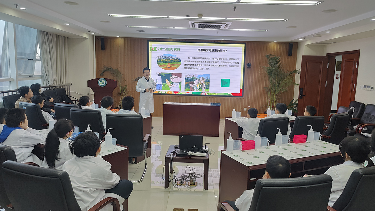 李安副研究员以生动有趣的科普动画片为先导,用通俗易懂的语言讲解了农药分类、农产品农药残留风险控制及检测方法等知识,并带领学生们参观了实验室;王昕璐博士教学生完成了豇豆中多菌灵农药快速检测实验,并传授了日常生活中去除豇豆中多菌灵残留的有效方法。