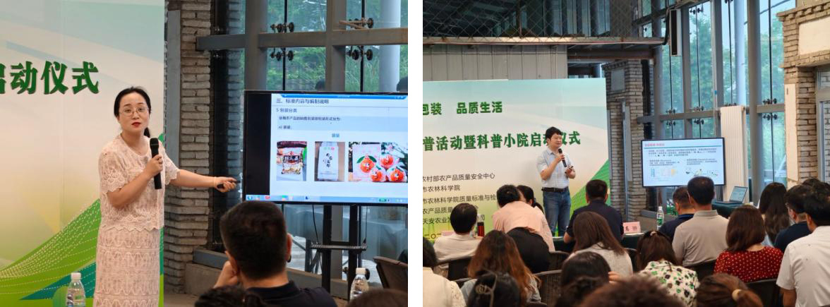 为创新农产品质量安全科普工作,提升公众科学素养,6月27日,由质标所、北京农产品质量安全学会、北京天安农业发展有限公司共同承办的“农产品包装标识科普活动暨科普小院启动仪式”在天安农业有机农场成功举办。农业农村部农产品质量安全中心高芳处长、北京市农业农村局高翀二级调研员、中国农业科学院农产品加工研究所保鲜与物流创新团队首席夏伊宁研究员、北京市农林科学院刘建华副书记、北京市农林科学院质标所耿东梅所长、北京市昌平区农业技术推广站祝宁副站长、北京天安农业发展有限公司林源董事长等领导、专家及农产品包装企业、生产企业、农业科研院校等50余名代表参加了活动。会议由北京农产品质量安全学会秘书长潘立刚研究员主持,质标所耿东梅所长代表承办单位致欢迎辞,北京市农业农村局高翀二级调研员作了讲话。