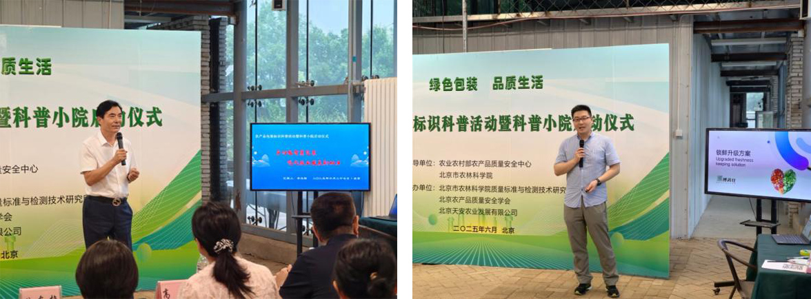 本次活动是在农业农村部农产品质量安全中心、中国绿色食品发展中心等单位策划和支持下,聚焦农产品质量安全与营养健康领域,以“绿色包装、品质生活”为主题,通过政策解读、专家咨询、产品展示,向广大生产者、经营者和消费者普及农产品包装、标识知识,推广包装保鲜新技术、新材料等。农业农村部农安中心高芳处长全面解读了即将发布的《食用农产品包装和标识通用技术要求》国家标准,中国农科院夏伊宁研究员分享了农产品包装保鲜技术研究进展,江阴市德惠热收缩包装材料有限公司、博芮仕保鲜科技有限公司等企业负责同志分别介绍了最新研发的包装保鲜产品及技术解决方案。在产品展示环节,由包装企业、农业企业、科研院校研发的包装标识新技术、新材料、新产品和新装备引起了现场人员的浓厚兴趣;与会人员观摩了农产品包装演示,参观了天安农业温室种植的有机蔬菜。
